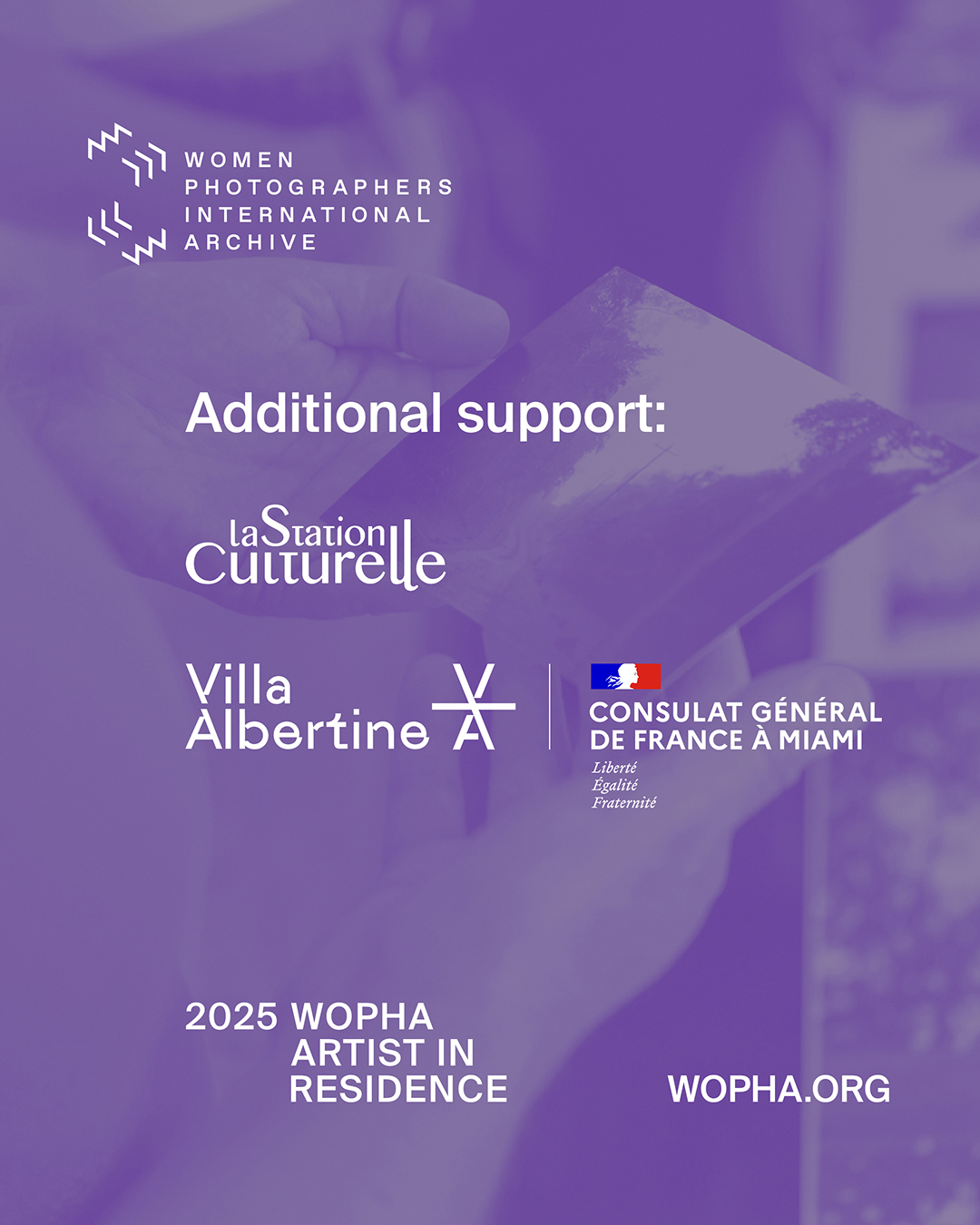 Since its launch in 2020, the WOPHA Artist-in-Residence program has been a vital platform for supporting emerging and mid-career women and non-binary artists working with photography. Presented in partnership with El Espacio 23, this month-long residency provides dedicated time and space for creative development, enabling artists to immerse themselves in research, experimentation, and community engagement while connecting with Miami’s vibrant cultural landscape.